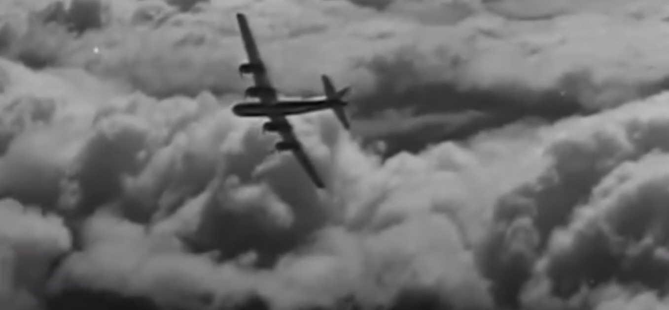 에놀라게이 기장 폴 티베츠 대령은 "우리는 방금 역사상 처음으로 원자폭탄을 투하했습니다"라고 말한다.