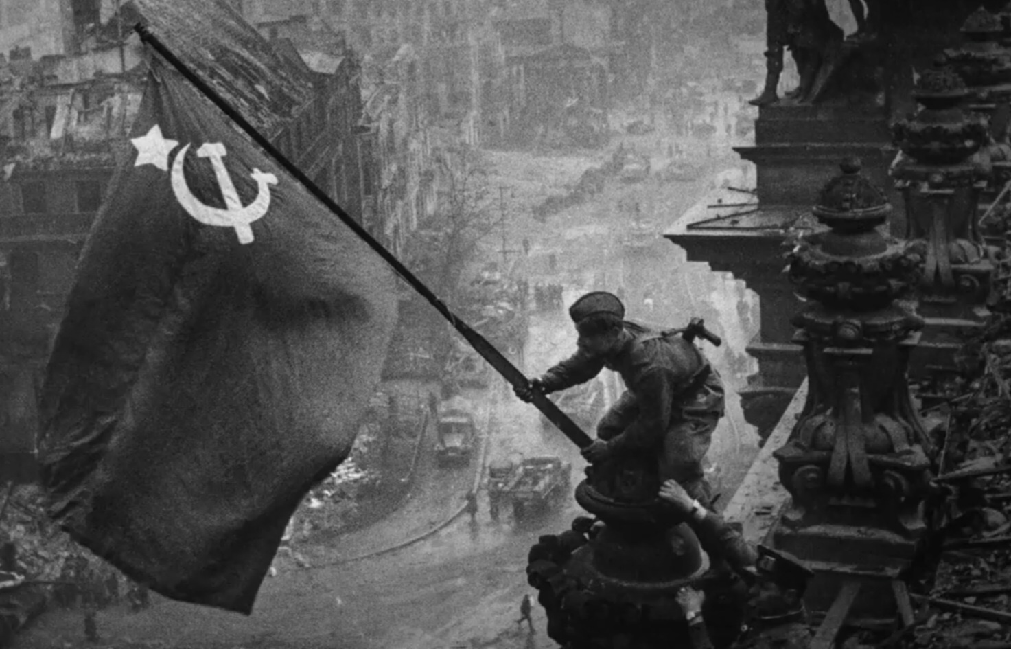 1945년 4월 30일 소련군이 나치 독일의 심장 독일 제국의회의사당을 점령했다. 6시간 제국의회의사당에서 공방전을 벌이다가 의사당을 점령하고 국기를 게양한 시점은 한밤중이다.