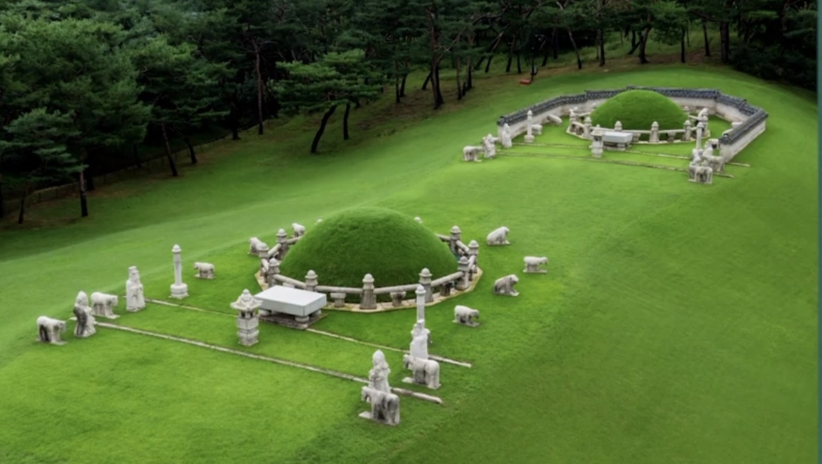 '의릉'은 다른 왕릉과 다르게 왕이 위에 위치하고 왕비의 무덤은 아래에 있는 동원상하릉의 형태이다.