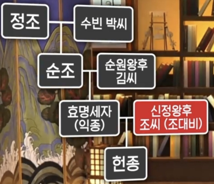 1863년에 12살의 나이로 왕이 된다. 이 과정에서 고종의 아버지 흥선대원군(1821~1898)이 중요한 역할을 한다. 왕실의 어른으로 가장 강력한 영향력이 있었던 조대비, 신정왕후 조씨였다. 조대비는 효명세자의 부인이었고 실질적으로 왕비로 역할을 하지 못했지만 후대에 추존이 돼서 신정왕후라고 한다. 순조.헌종.철종의 왕비가 다 안동 김씨였고 안동 김씨가 견제 받던 시기에 신정왕후 조씨는 풍양 조씨였다.