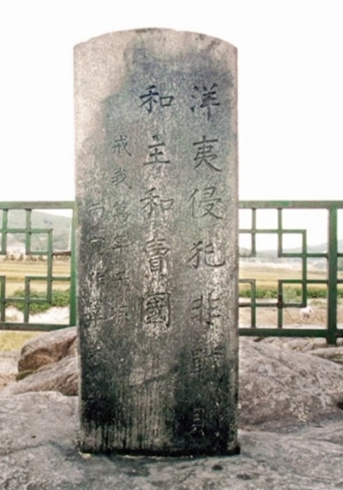 1866년 프랑스가 강화도를 침략한 병인양요, 1871년 미국이 조선을 무력 침략한 신미양요를 겪었다. 대원군척화비大院君斥和碑를 세우면서 '서양의 오랑캐와 화친하는 것은 나라를 팔아먹는 행위다'라며 강력한 외세 배격 정책을 썼다.