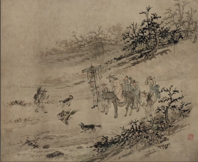 평민들의 일상은 노동이라면 양반들의 일상은 독서이다. 매일 책을 읽다가도 가끔은 바람을 쐬야 한다. 옛날 선비들의 최고의 바람은 매사냥 여행이었다. 이 그림 속에는 많은 등장인물들이 나온다.