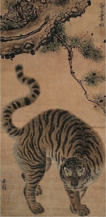 호랑이 그림은 털 짐승 중에 가장 그리기가 어렵다. 조선 500백년 역사에서 호랑이 그림의 일인자는 단원 김홍도일 것이다.